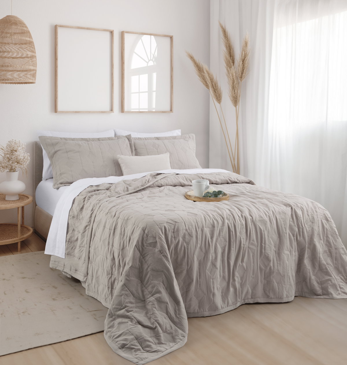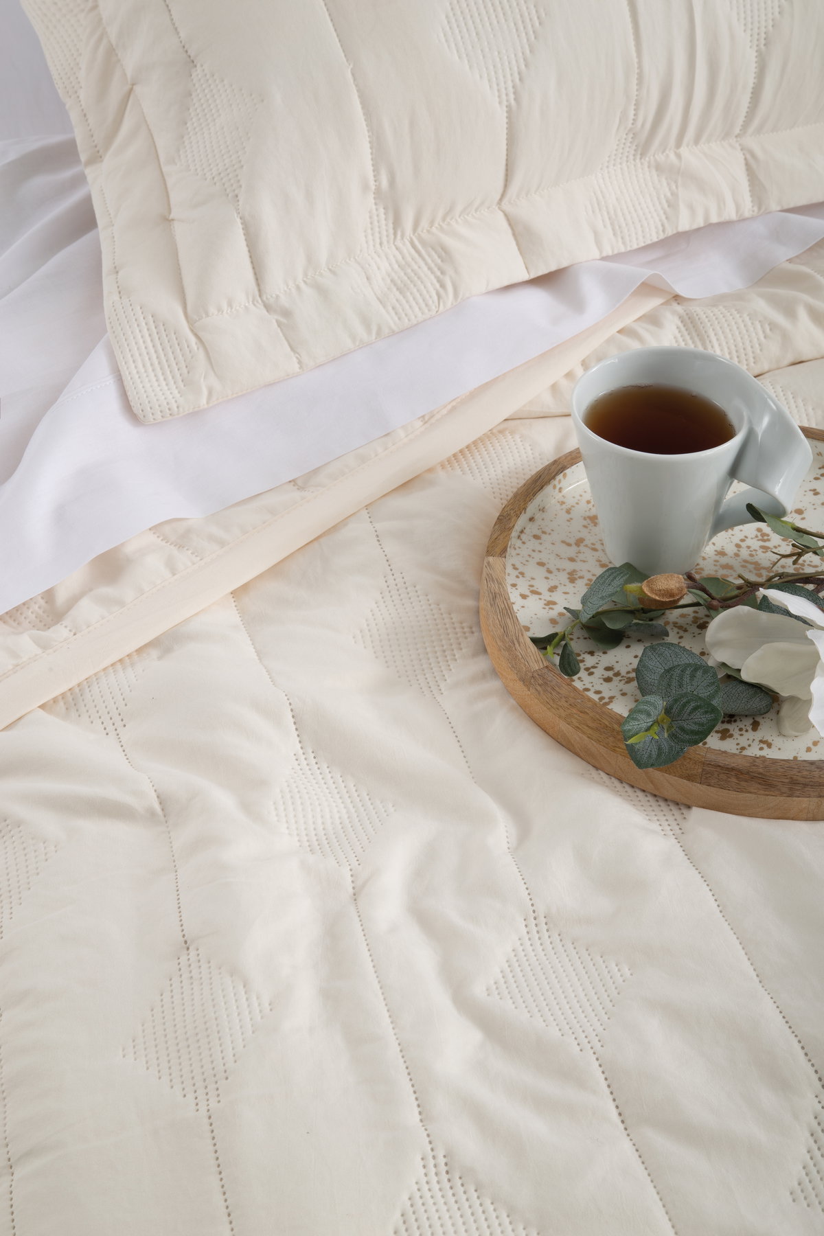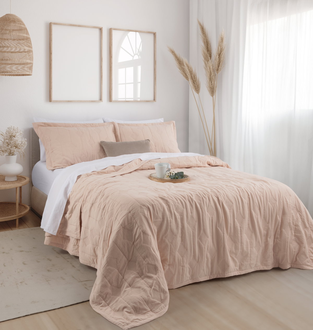 Kit de 2 y 3 piezas de microfibra prewashed liso con diseño ultrasonic, compuesto por cover + funda/s de almohadón con marco.
