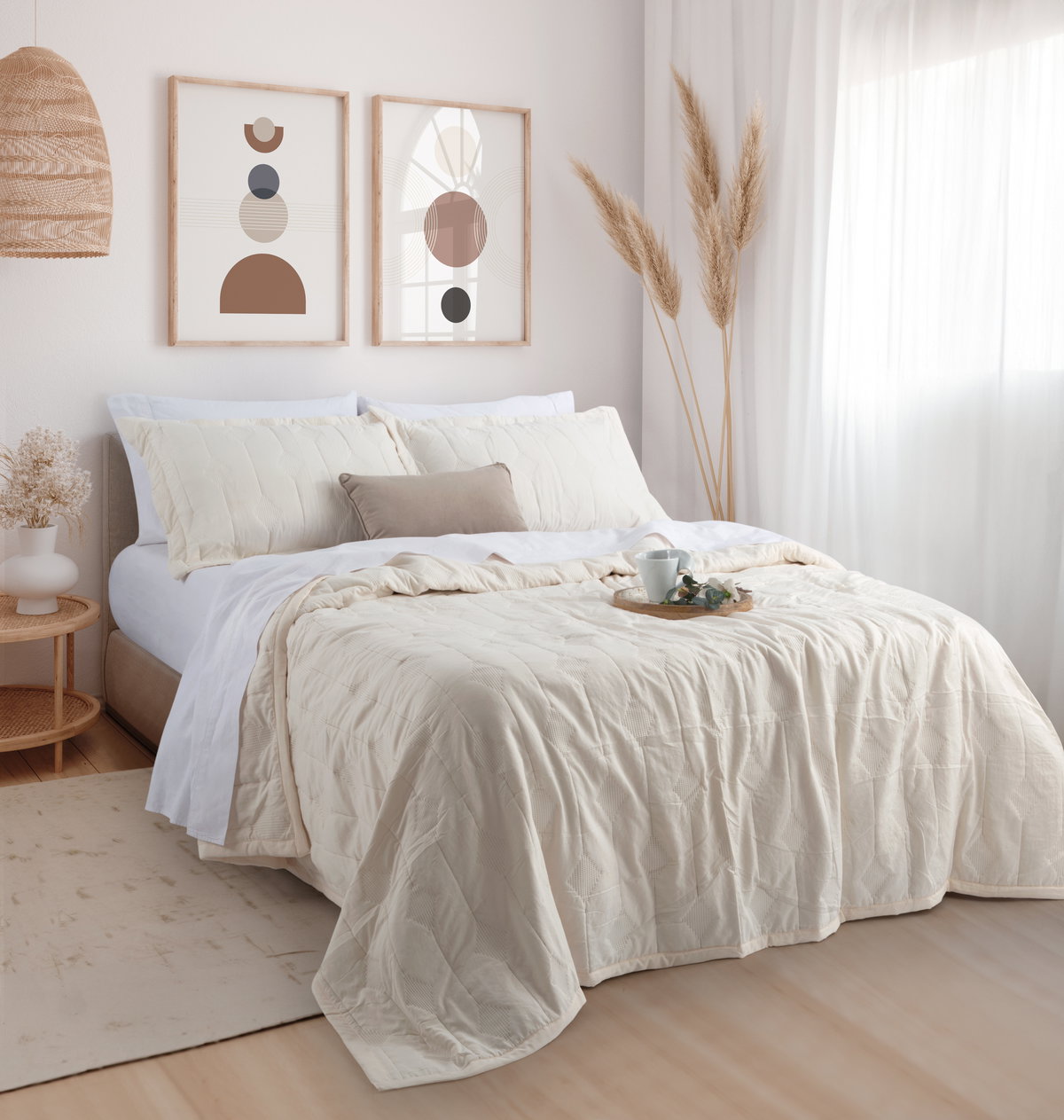 - Queen Size · ACover: 240 x 240 cm · 2 fundas de almohadón: 70 x 50 x 5 cm