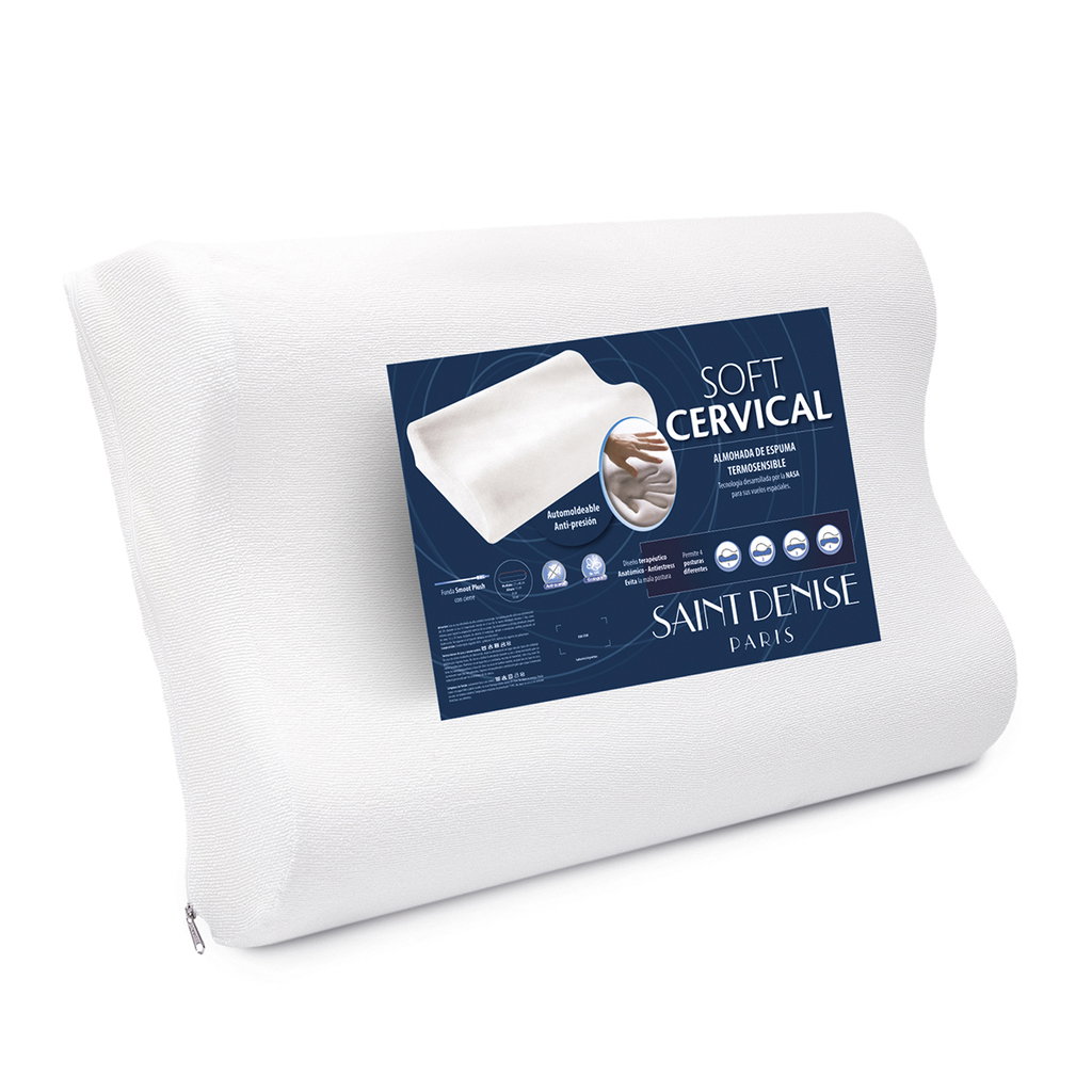 Mejora tu descanso con la Almohada Soft Cervical de Saint Denise, diseñada para brindar soporte óptimo y adaptarse a tu cuerpo gracias a su espuma termosensible.