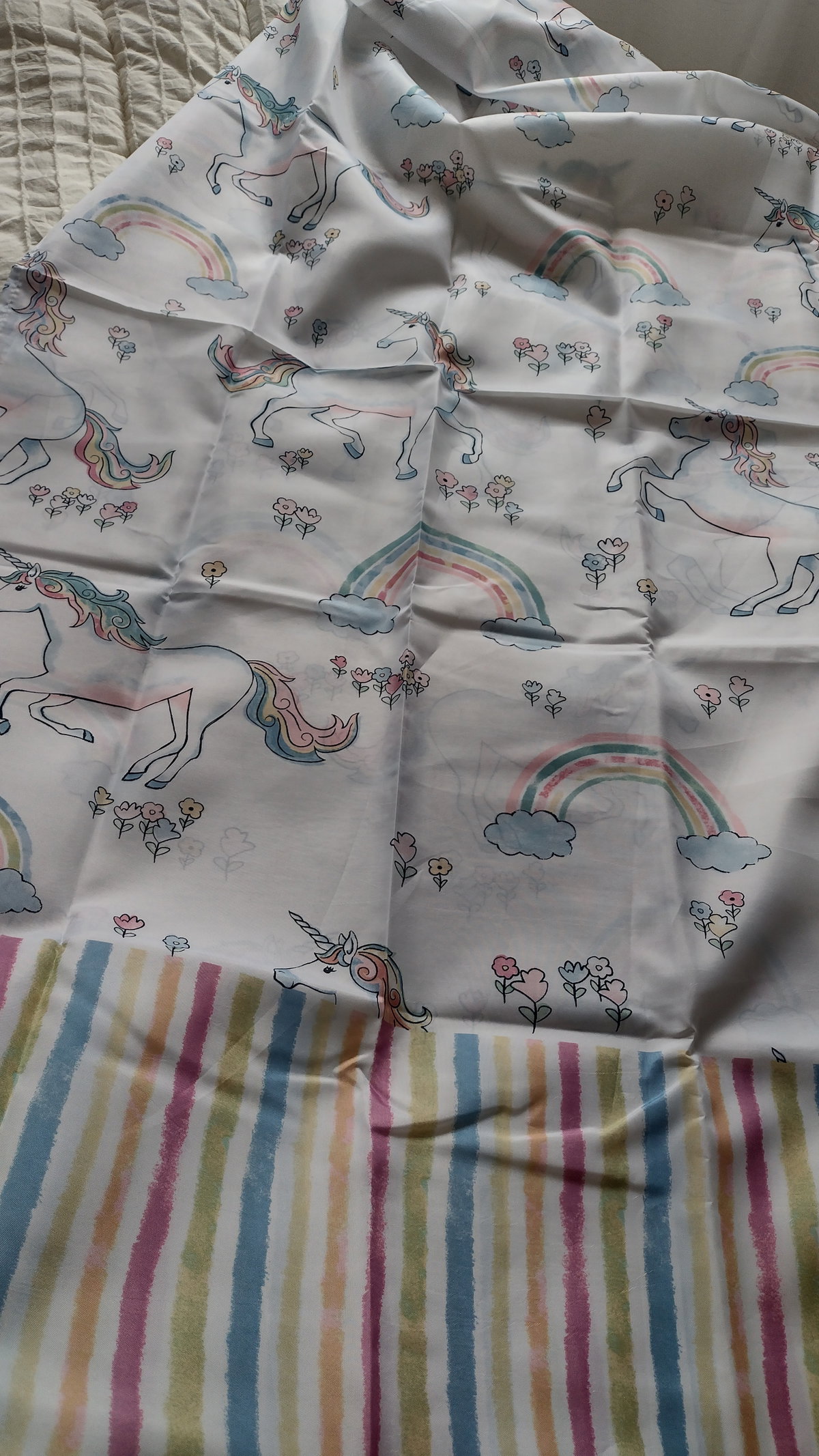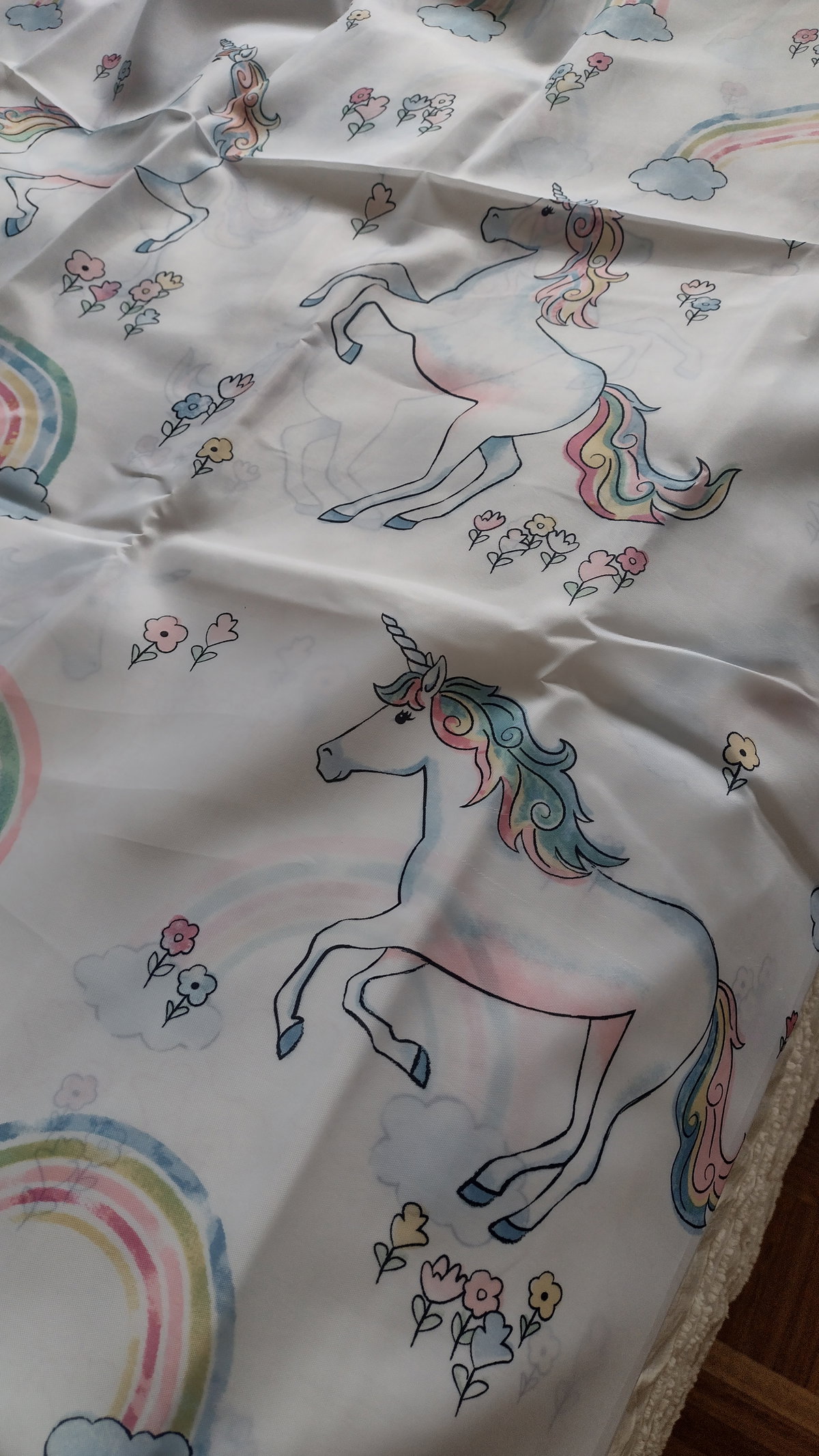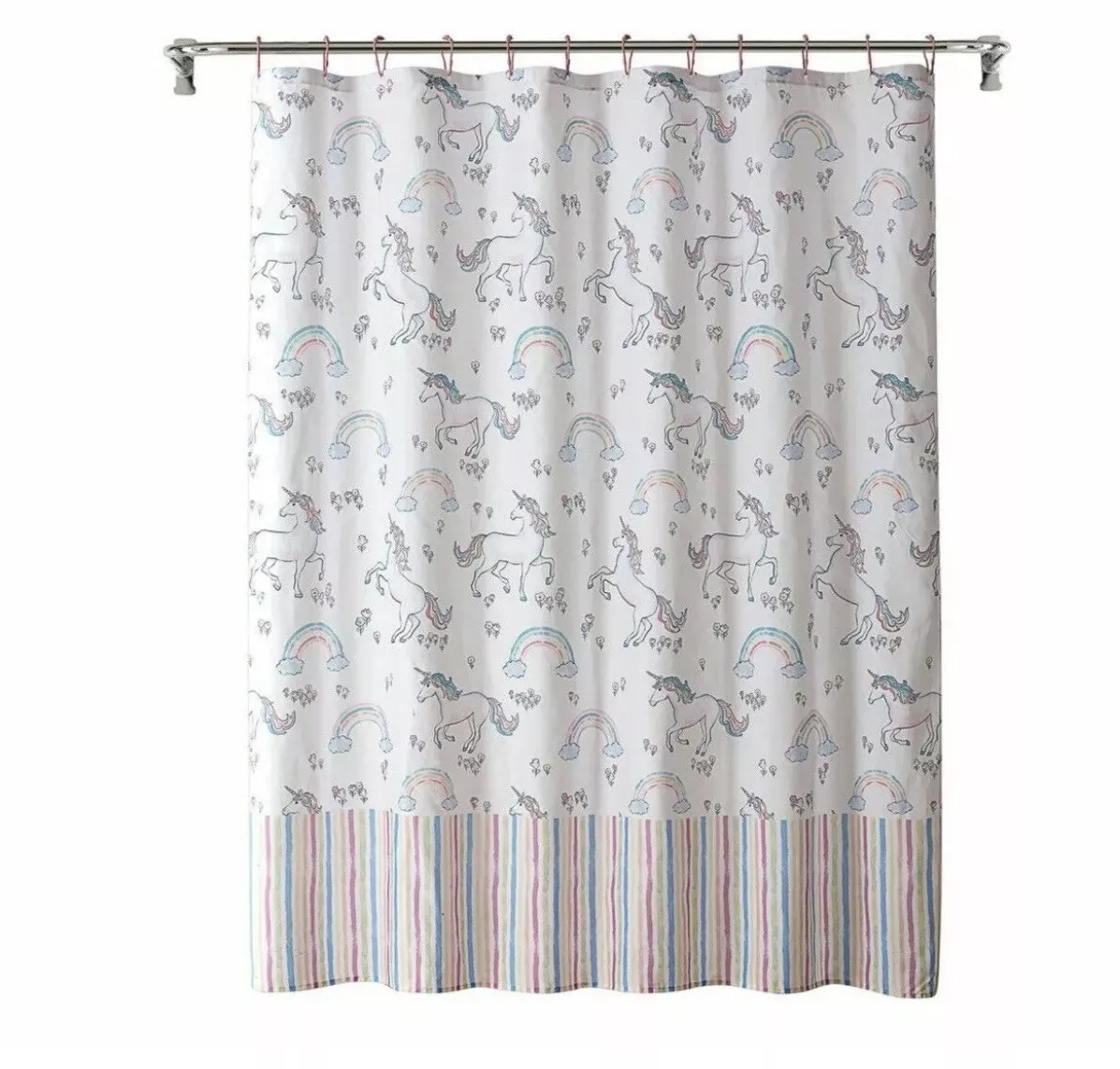 Cortina de Baño estampada de unicornios y arcoiris