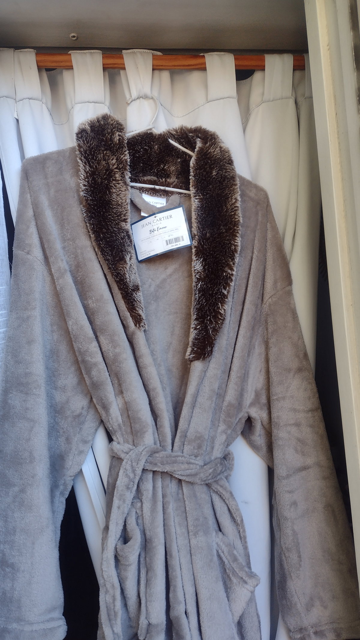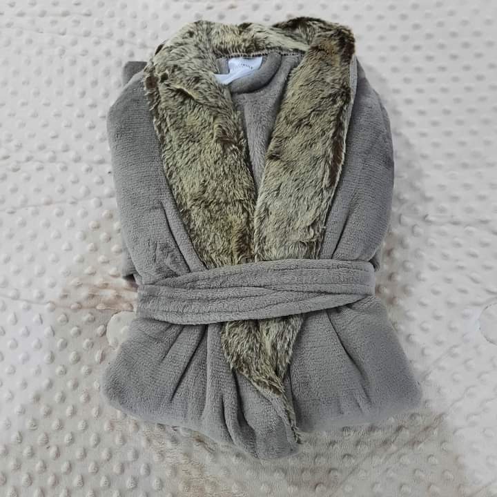 Bata flannel Fleece con cuello símil piel