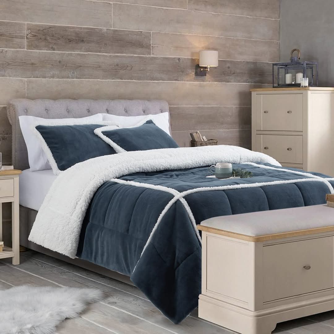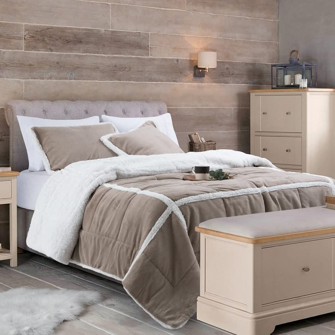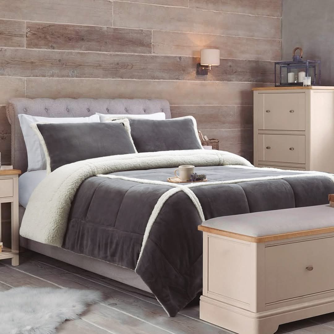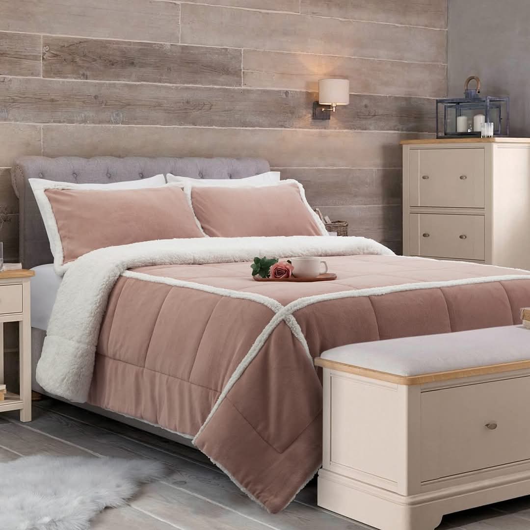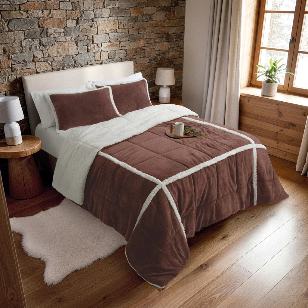 Kit Alaska. Edredón de coral fleece combinado con corderito natural con fundas .