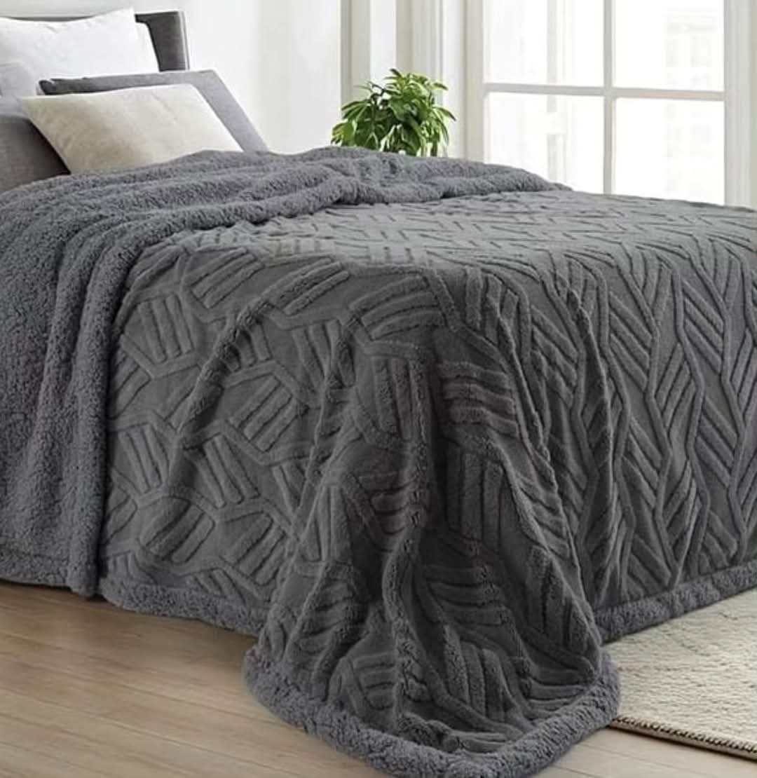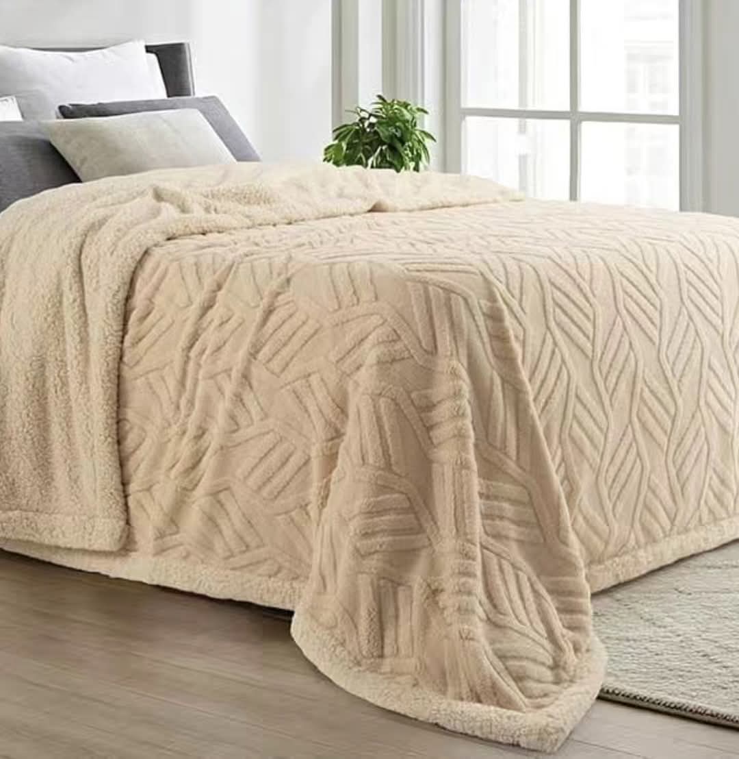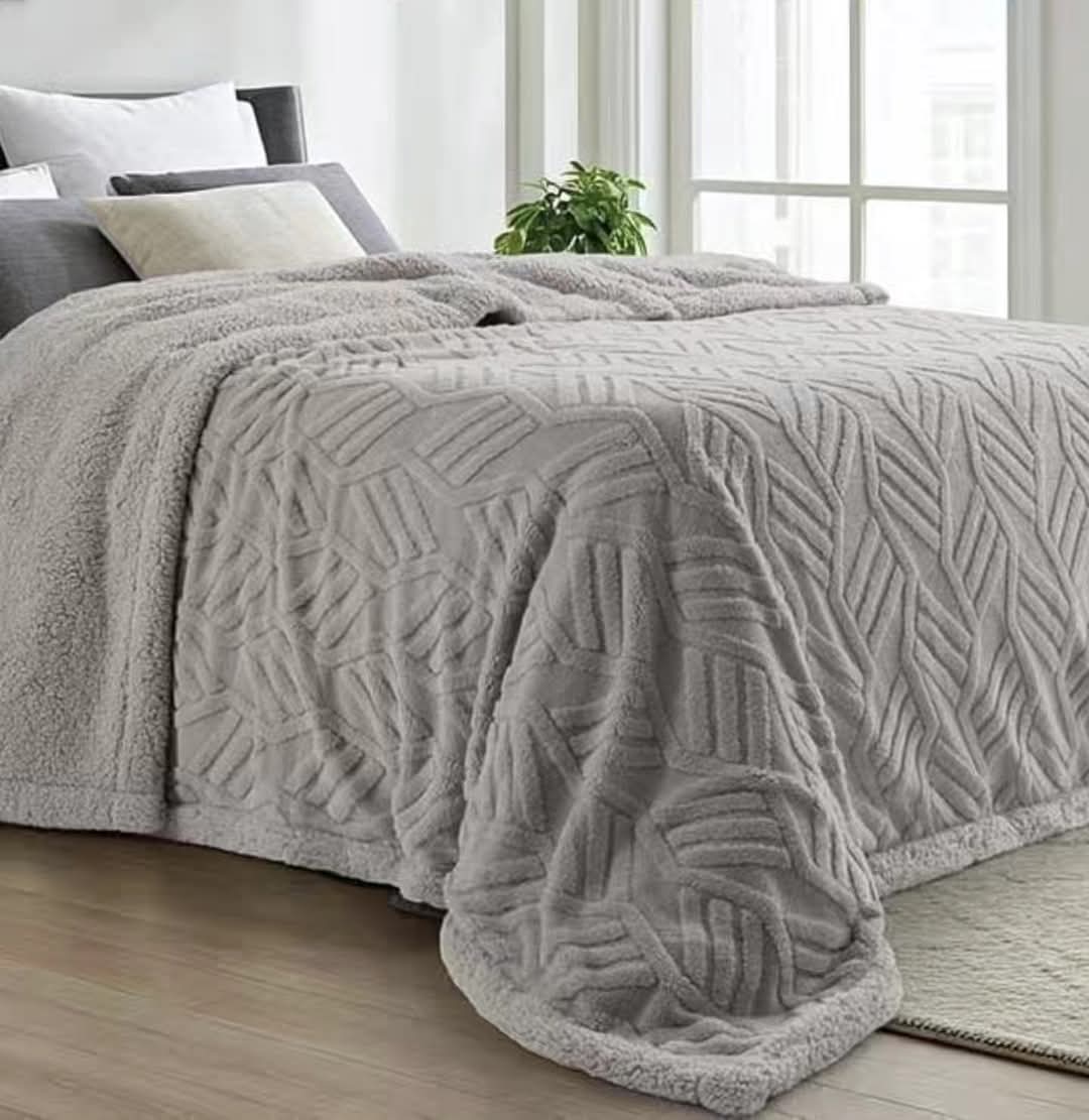 Cubrecama doble pesado de invierno, de corderito jacquard con reverso de corderito ROMA ¡SÚPER CALENTITO!