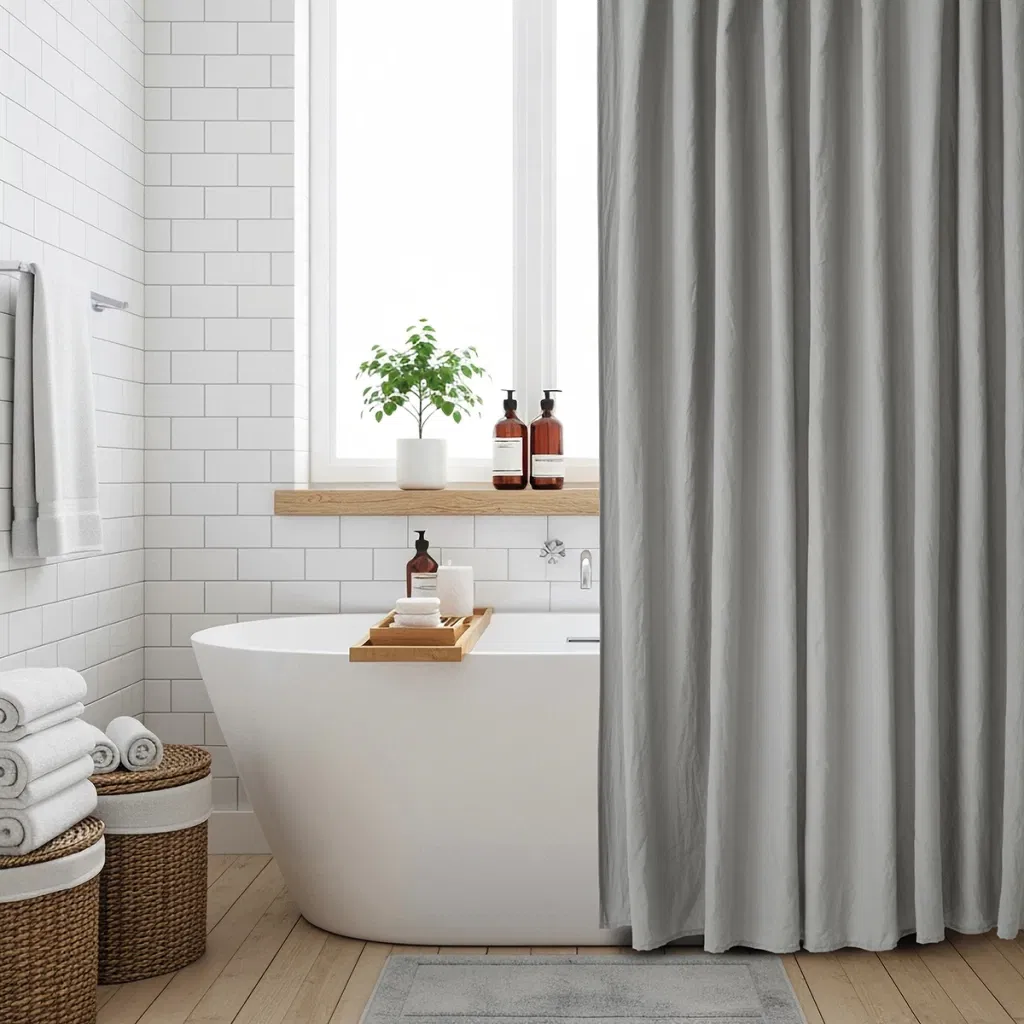 Mantené tu baño elegante y práctico con el set de baño Jean Cartier. Incluye cortina de baño de símil tusor y 12 ganchos plásticos, confeccionados en microfibra premium, combinando resistencia, fácil limpieza y diseño moderno para tu espacio.